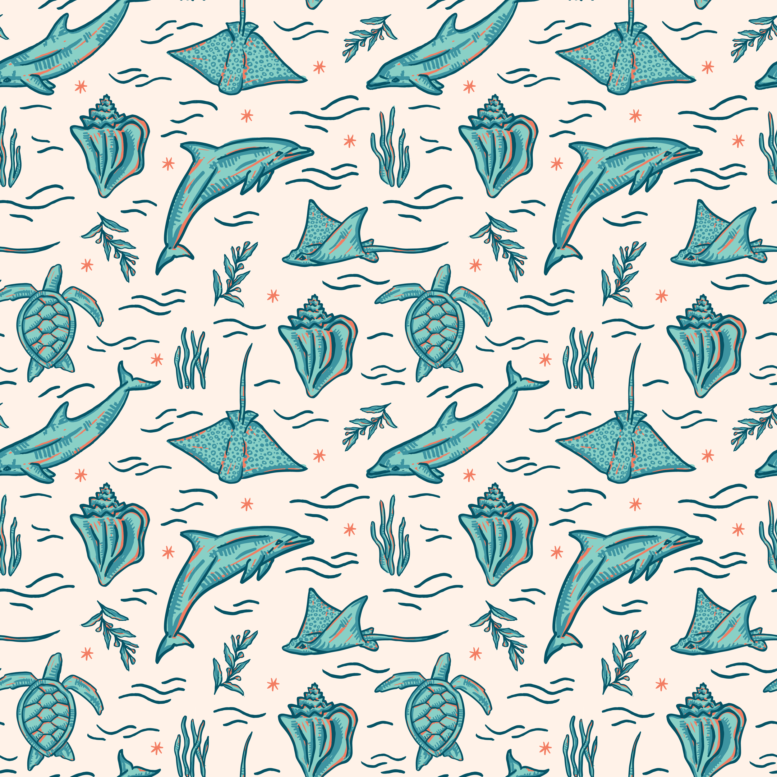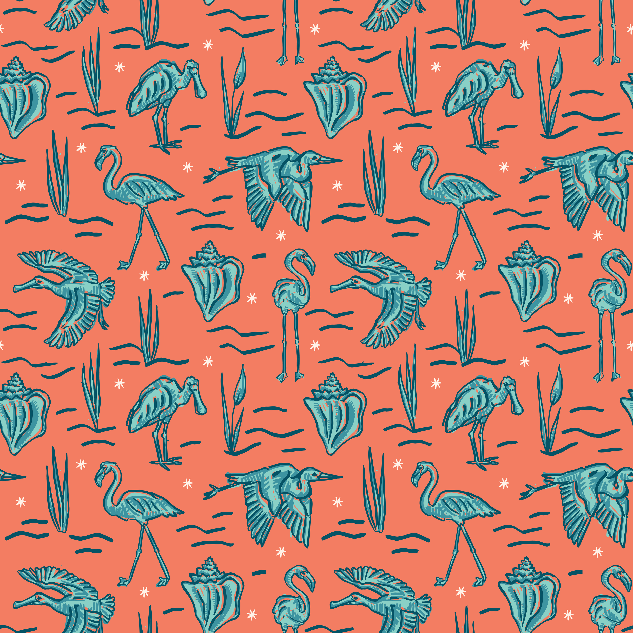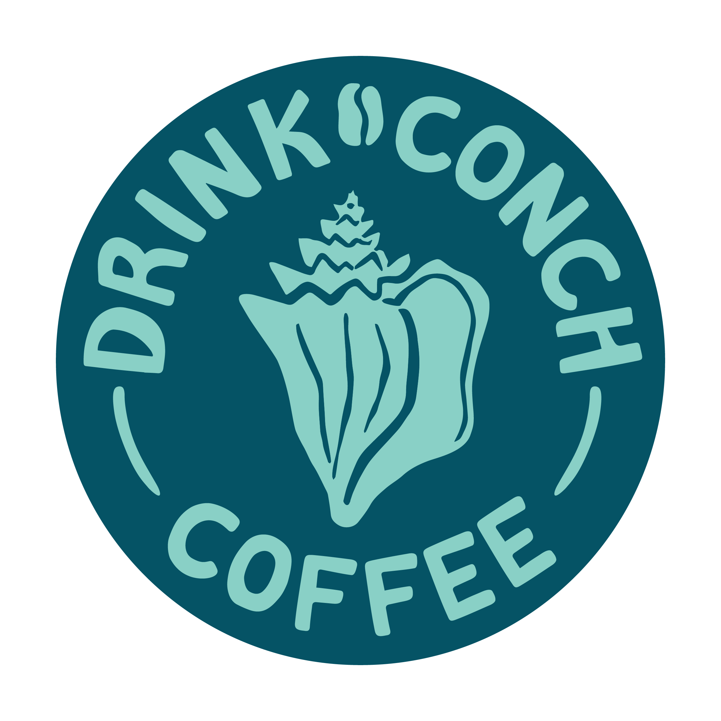 Original logo and full branding design for Conch Coffee - where island vibes meet the perfect brew. The logo, patterns, and lettering are all original Oona Seas designs inspired by the nature and wildlife found in the tropics. Start your journey to sip, savor & relax here!